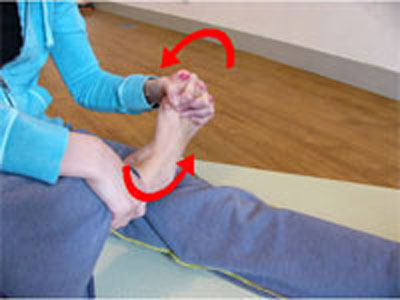 4.握住脚趾后,以右脚的脚踝为中心,进行顺时针和逆时针的旋转,每个方向旋转五次左右。